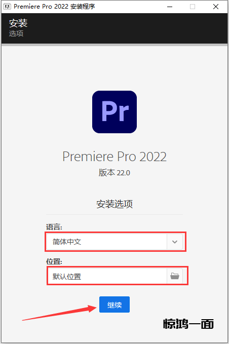 2.选择合适的语言和安装位置安装位置(建议安装在C盘以外的其他分区)然后点继续