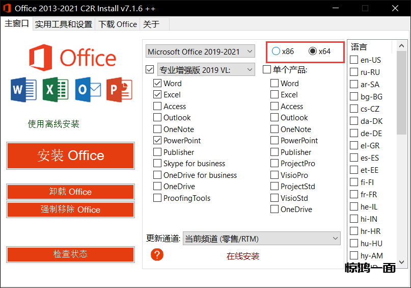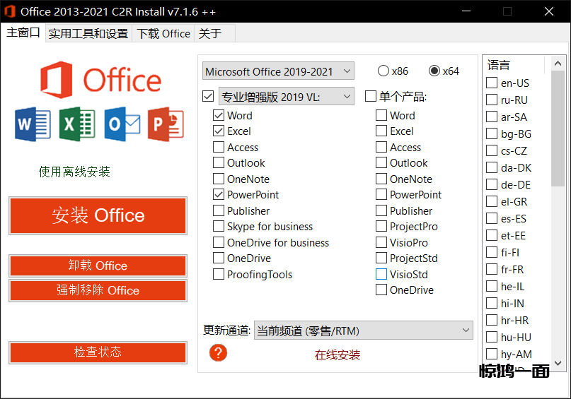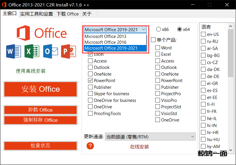 Office 2013-2019 C2R Install是由俄罗斯人Ratiborus制作的Microsoft Office下载、安装、管理的自定义部署工具。它可以在线下载安装 Office 2013-2019 的各个版本,离线安装部署Office镜像,自定义安装Office产品组件,支持Office零售版转换批量许可版,在线KMS激活Office,可选内置Office密钥许可证安装。