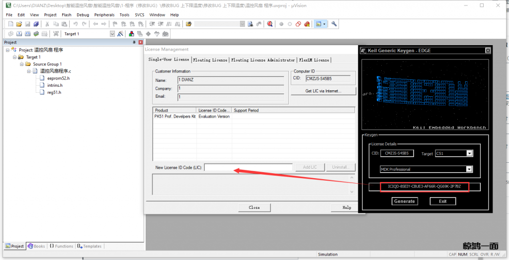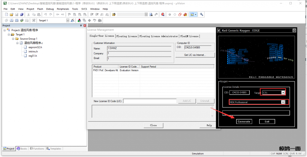 Keil C51是美国Keil Software公司出品的51系列兼容单片机C语言软件开发系统,与汇编相比,C语言在功能上、结构性、可读性、可维护性上有明显的优势,因而易学易用。Keil提供了包括C编译器、宏汇编、链接器、库管理和一个功能强大的仿真调试器等在内的完整开发方案,通过一个集成开发环境(μVision)将这些部分组合在一起。运行Keil软件需要WIN98、NT、WIN2000、WINXP等操作系统。如果你使用C语言编程,那么Keil几乎就是你的不二之选,即使不使用C语言而仅用汇编语言编程,其方便易用的集成环境、强大的软件仿真调试工具也会令你事半功倍。