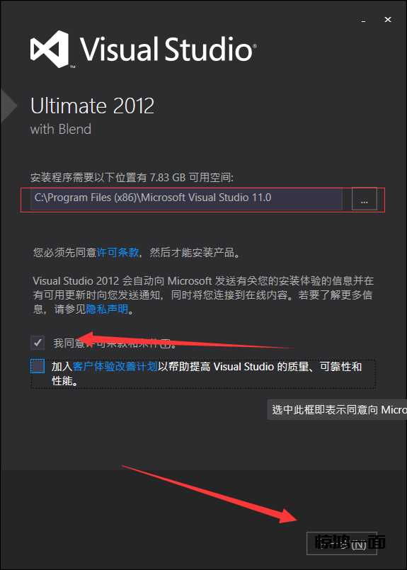 2.更改软件的安装目录,再勾选“我同意许可条款和条件”,再点击“下一步”