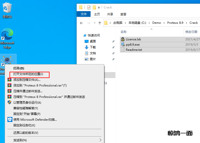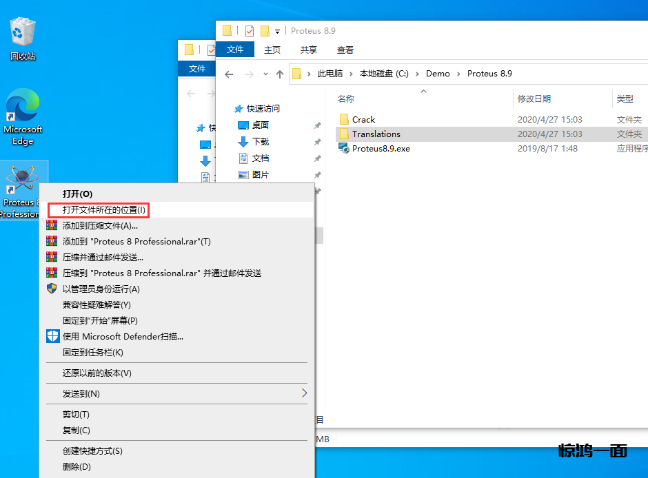 22.再次右键桌面Proteus 8.9的快捷方式,右键点击打开文件所在的位置