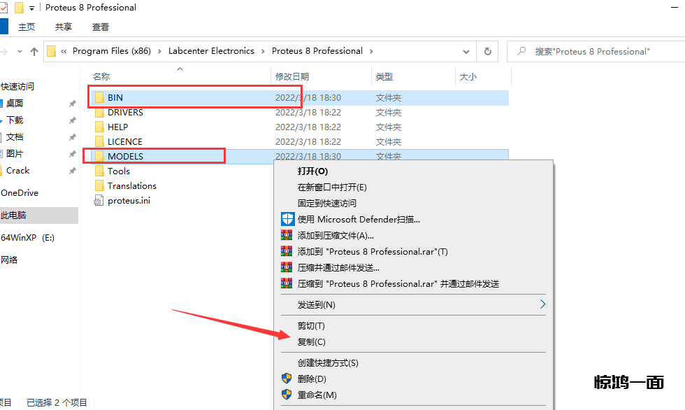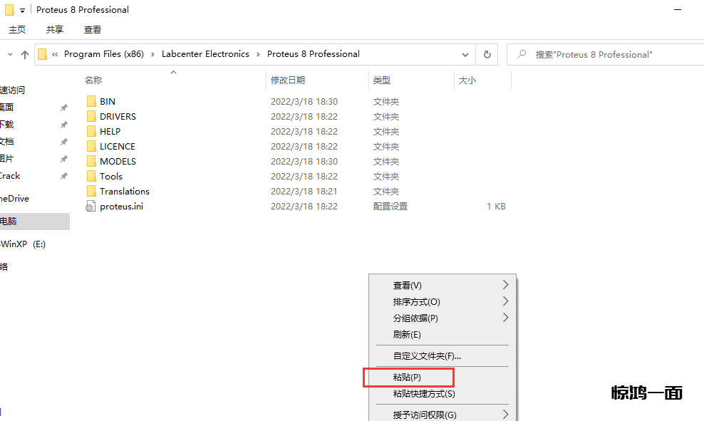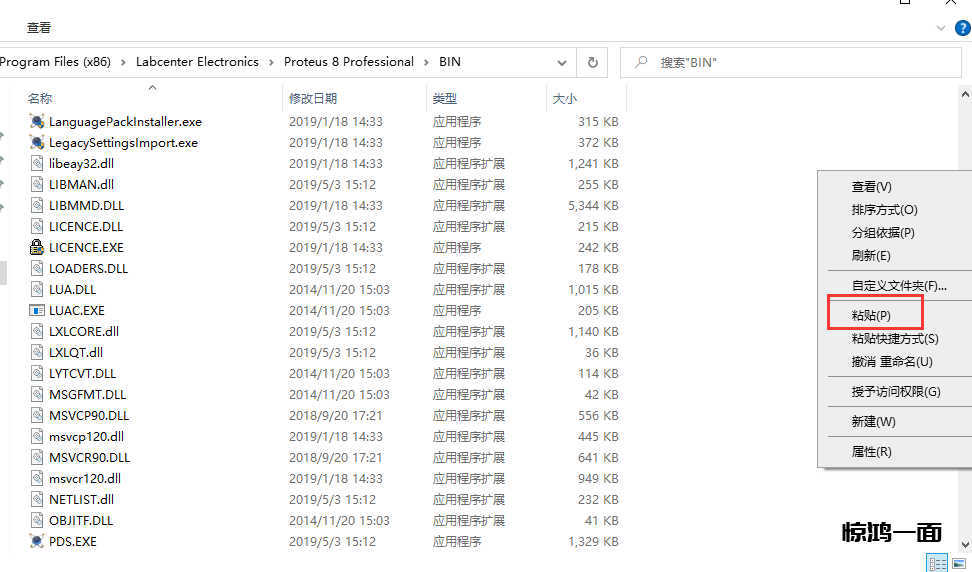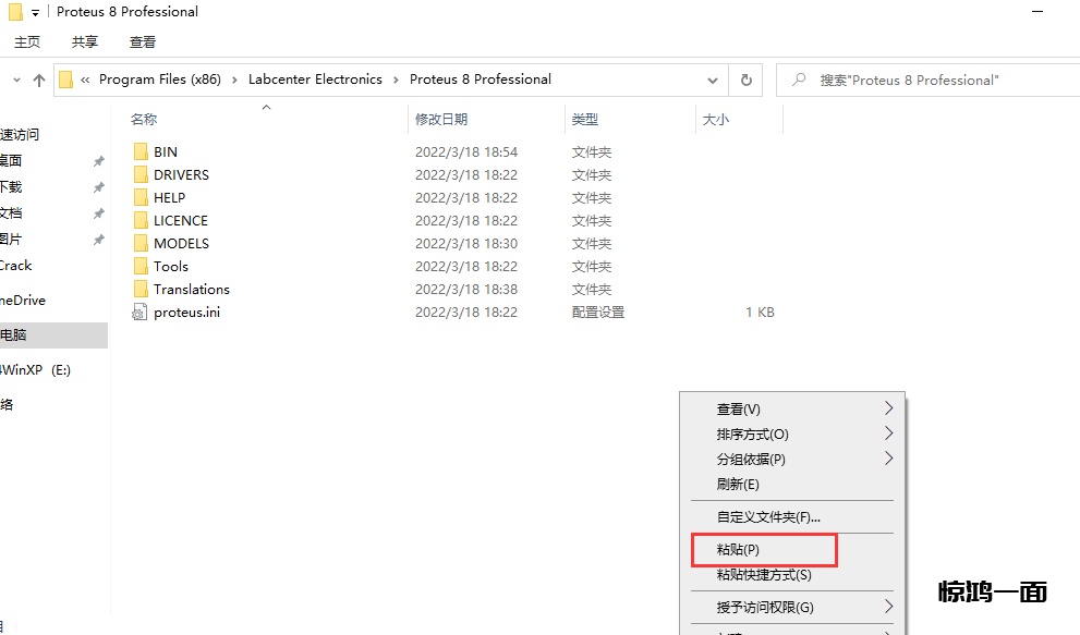 26.回到Proteus的安装路径(同22、23步),【右键粘贴,替换目标文件
