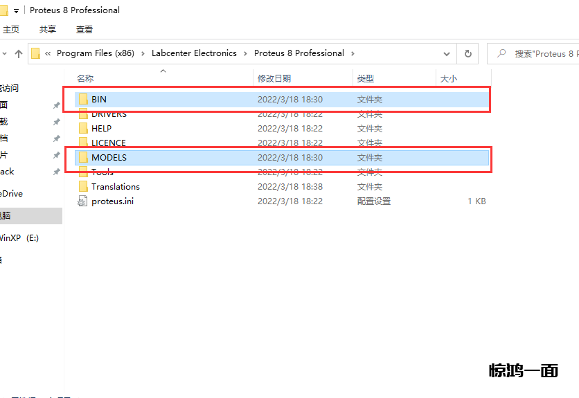 25.进入C:\Program Files (x86)\Labcenter Electronics\Proteus 8 Professional目录下,进入此文件夹,复制这两个文件夹
