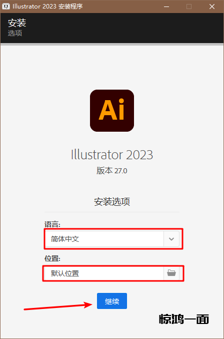 2. 选择合适的语言和安装位置安装位置(建议安装在 C 盘以外的其他分区)然后点继续