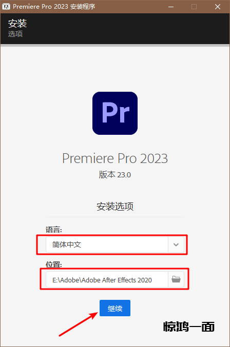 2.选择合适的语言和安装位置安装位置(建议安装在C盘以外的其他分区)然后点继续