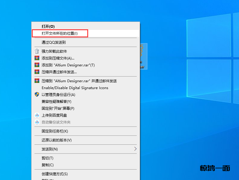 2. 点击左下角的开始菜单找到 Altium Designer 软件图标往桌面拖动即可创建桌面快捷方式,再右键打开文件位置,并粘贴刚刚复制的这个文件