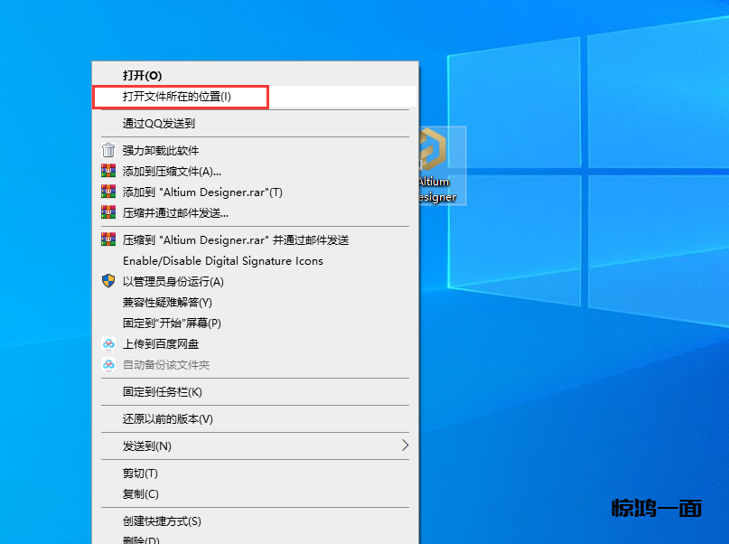 2.点击左下角的开始菜单找到 Altium Designer 软件图标往桌面拖动即可创建桌面快捷方式,再右键打开文件位置,并粘贴刚刚复制的这个文件