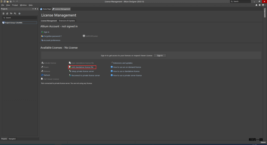 7.点击Add standalone license file