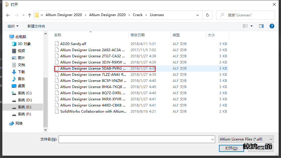8.找到你安装包下载目录*\Altium Designer 2020\Crack\Licenses下的文件