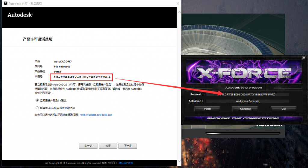 10.复制申请号到注册机里(Ctrl+C 复制 , Ctrl+V 粘贴)