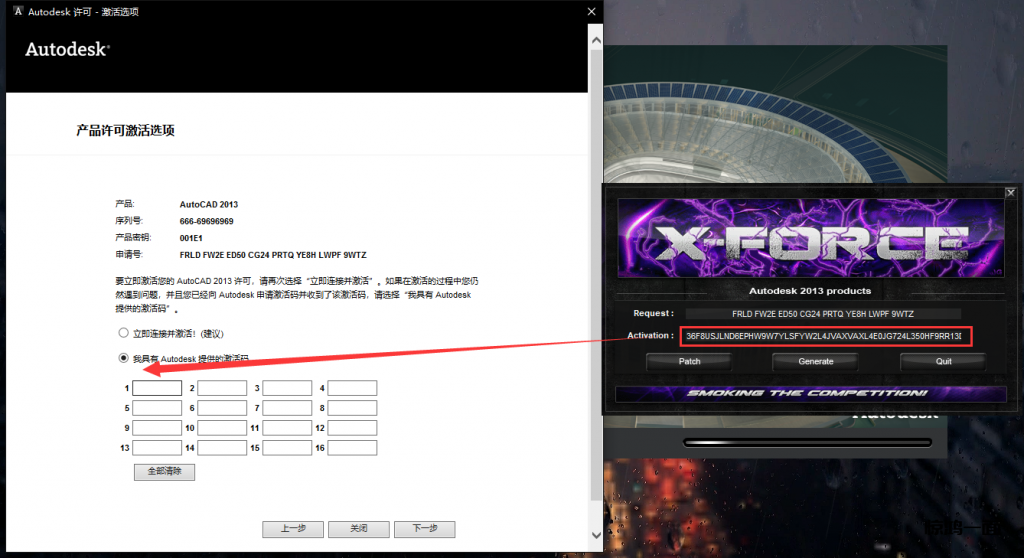 12.复制Activation里生成的激活码到激活界面里,点下一步(Ctrl+C 复制 , Ctrl+V 粘贴)
