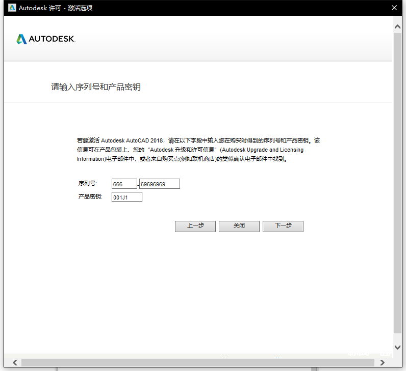 4.输入序列号:666-69696969 产品密钥:001J1 下一步