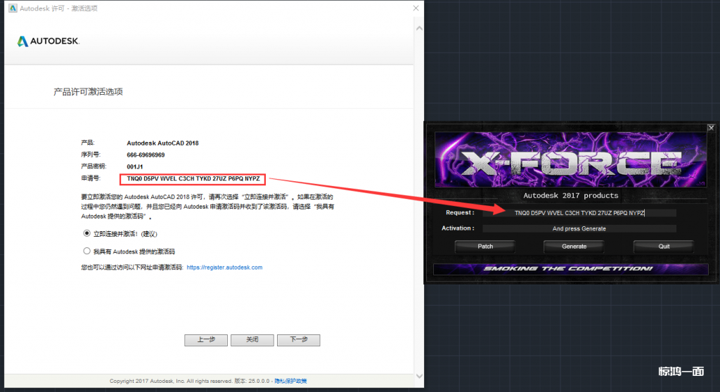 10.复制申请号到注册机里(Ctrl+C 复制 , Ctrl+V 粘贴)