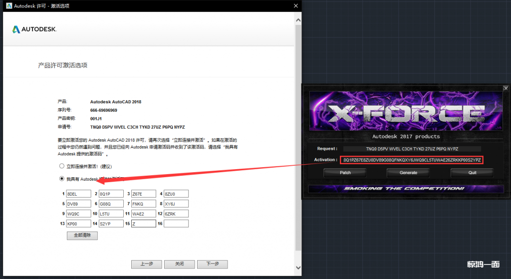 12.复制Activation里生成的激活码到激活界面里,点下一步(Ctrl+C 复制 , Ctrl+V 粘贴)