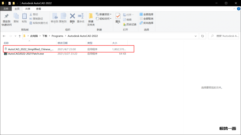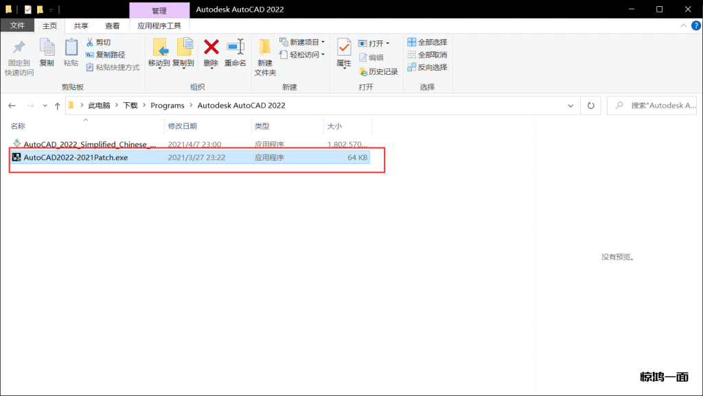 1.在安装包找到AutoCAD2022-2021Patch