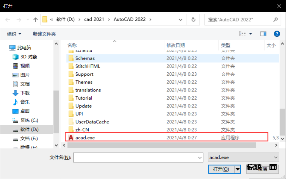 4.找到你安装的根目录找到acad.exe并确定