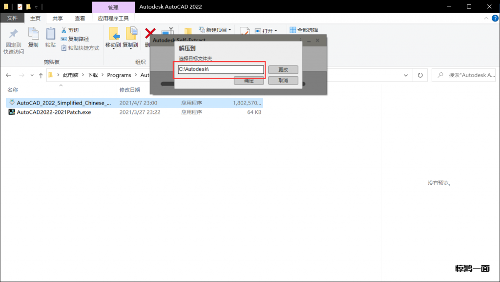 1. 下载并解压安装包,运行 AutoCAD_2022