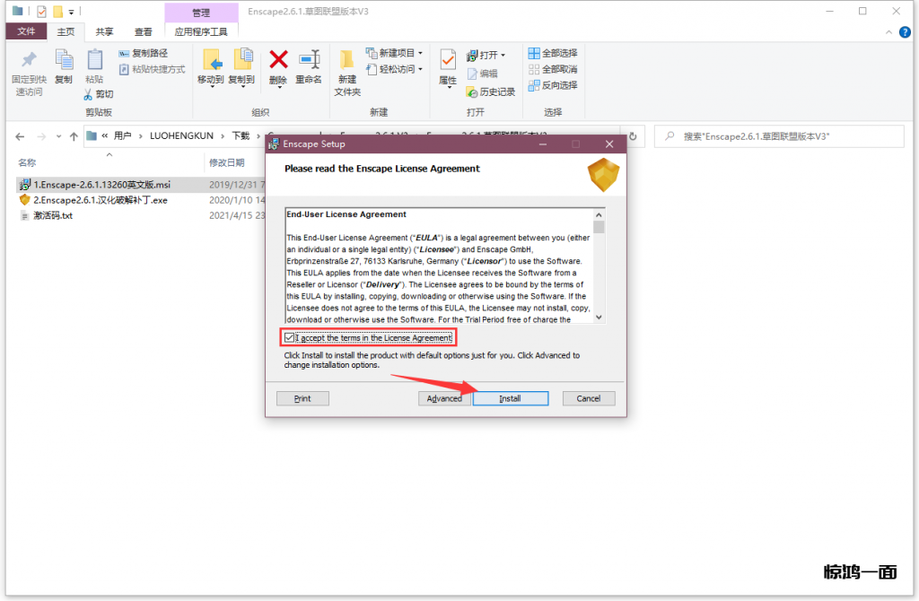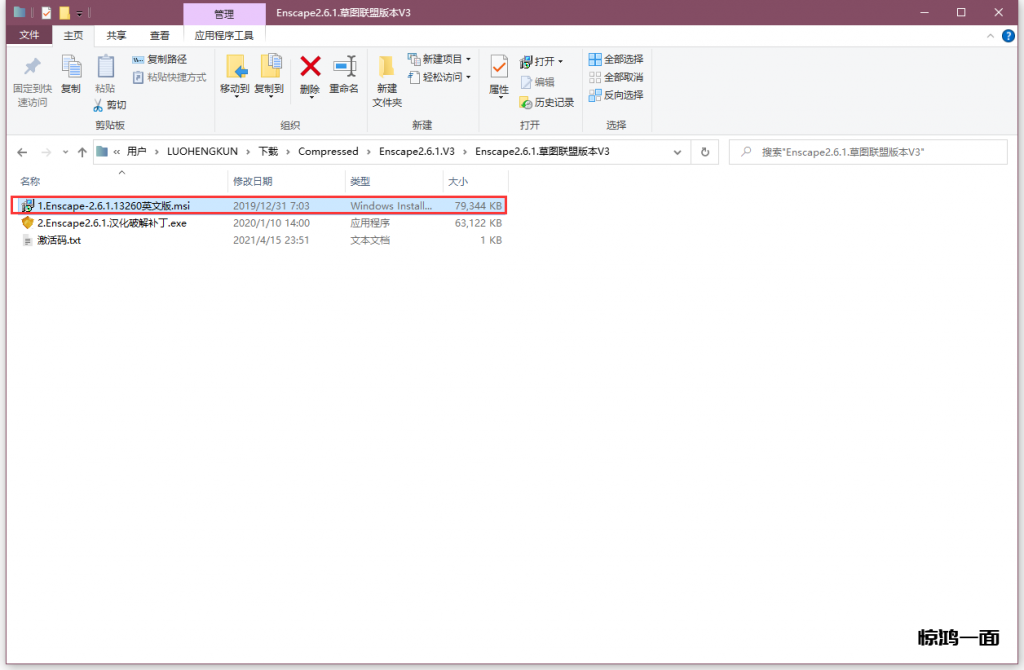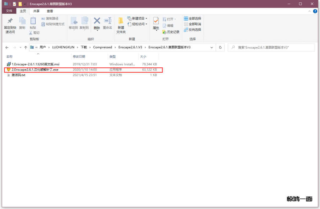 9.回到刚刚下载的安装包,运行Enscape2.6.1.汉化破解补丁