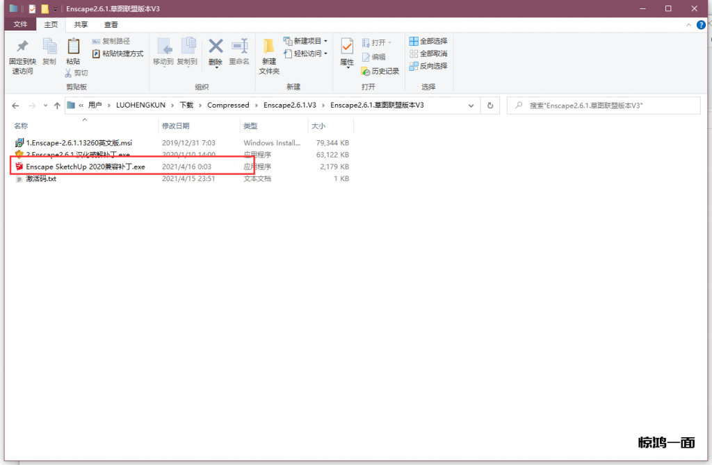 1.下载并解压安装包,运行Enscape SketchUp 2020兼容补丁
